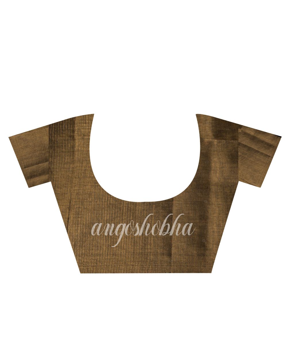 Coppre Black Handloom Zari Cotton Tissue Saree