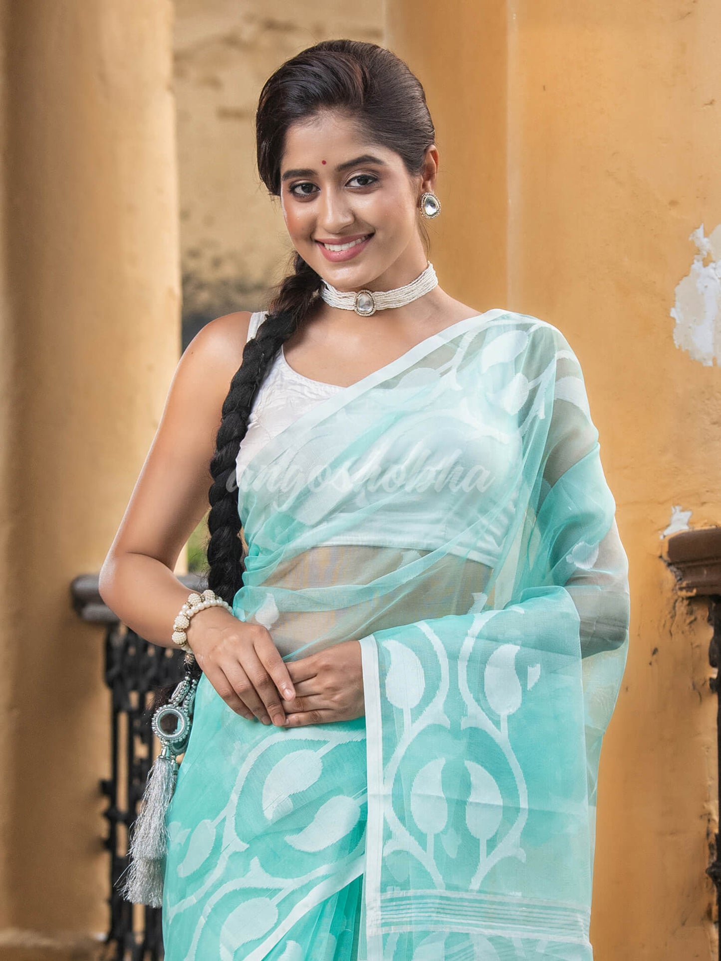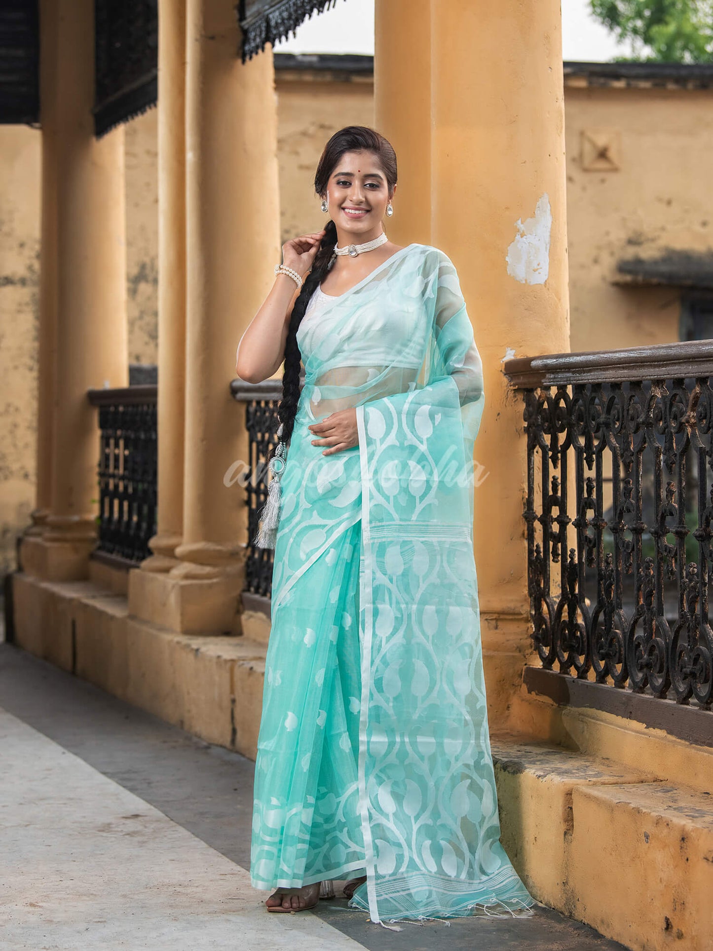 Firozi Blend Silk Muslin Jacquard Jamdani Saree
