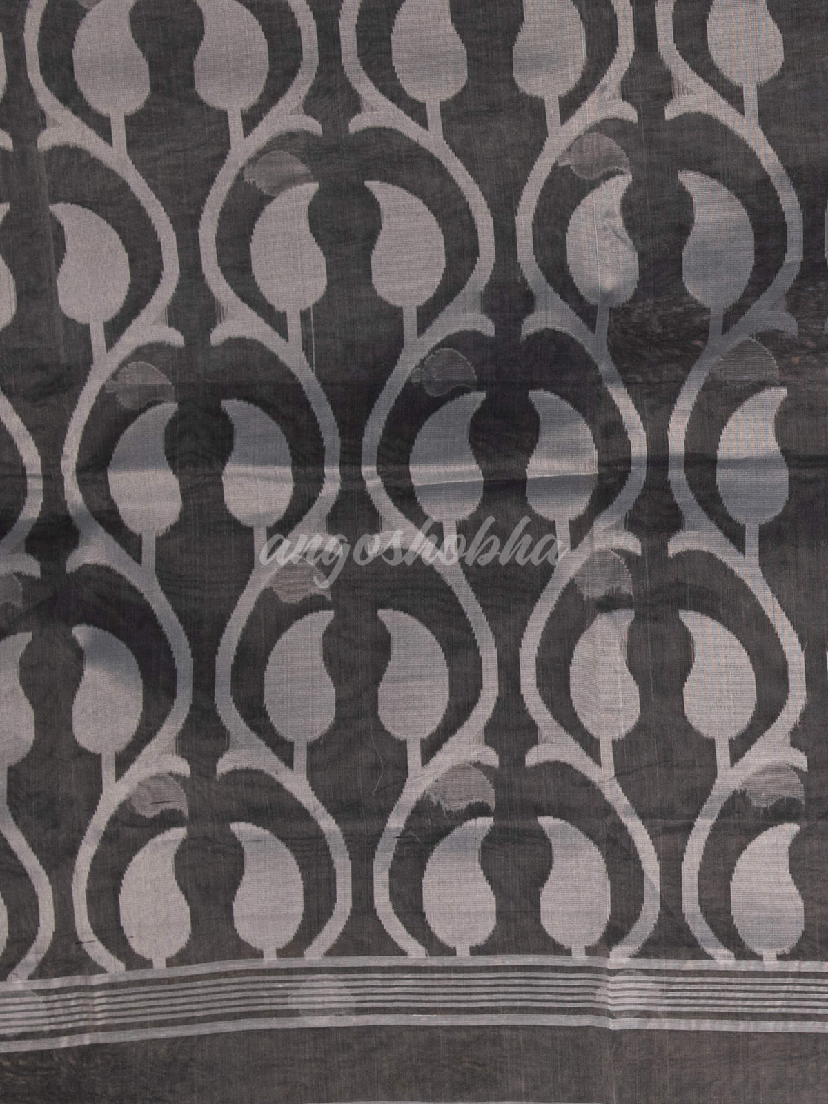 Grey Blend Silk Muslin Jacquard Jamdani Saree