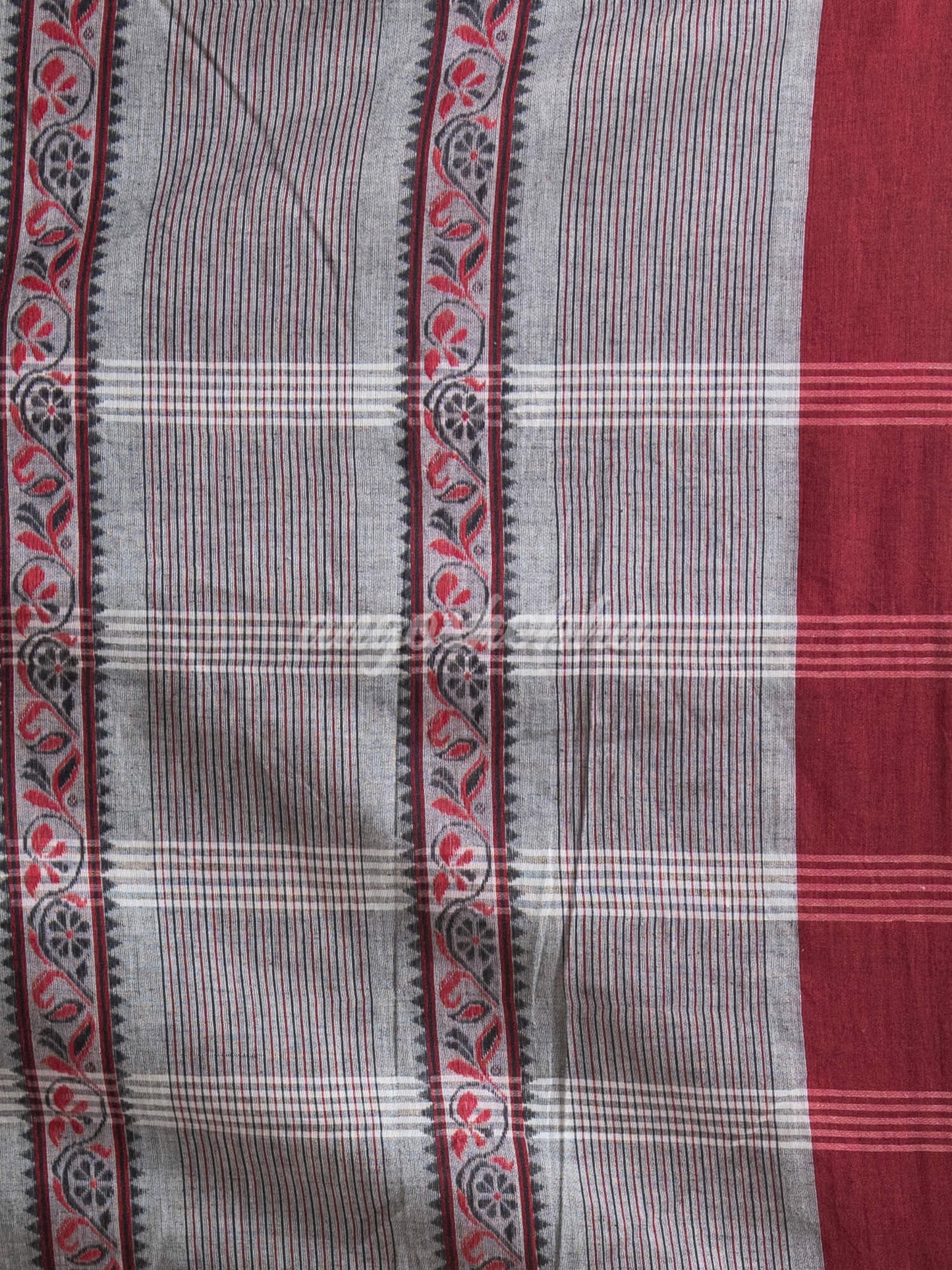 Description: Accentuate your ethnic ensemble by wearing this saree from Angoshobha. Sarees have their own grace, specially this one.This saree from Angoshobha is a beautiful Grey cotton jacquard saree. Saree all body jacquard work. with ganga yamuna border with pallu white colour strip and jacquard work. You can wear any whern and Crafted in a cotton fabric, this beauty gives the most comfortable and any festival moment with wonderful enjoyment.So collect this product and enjoy with wearing cotton saree. Obviously you can trust on this collection. We are always with your fashion and choice