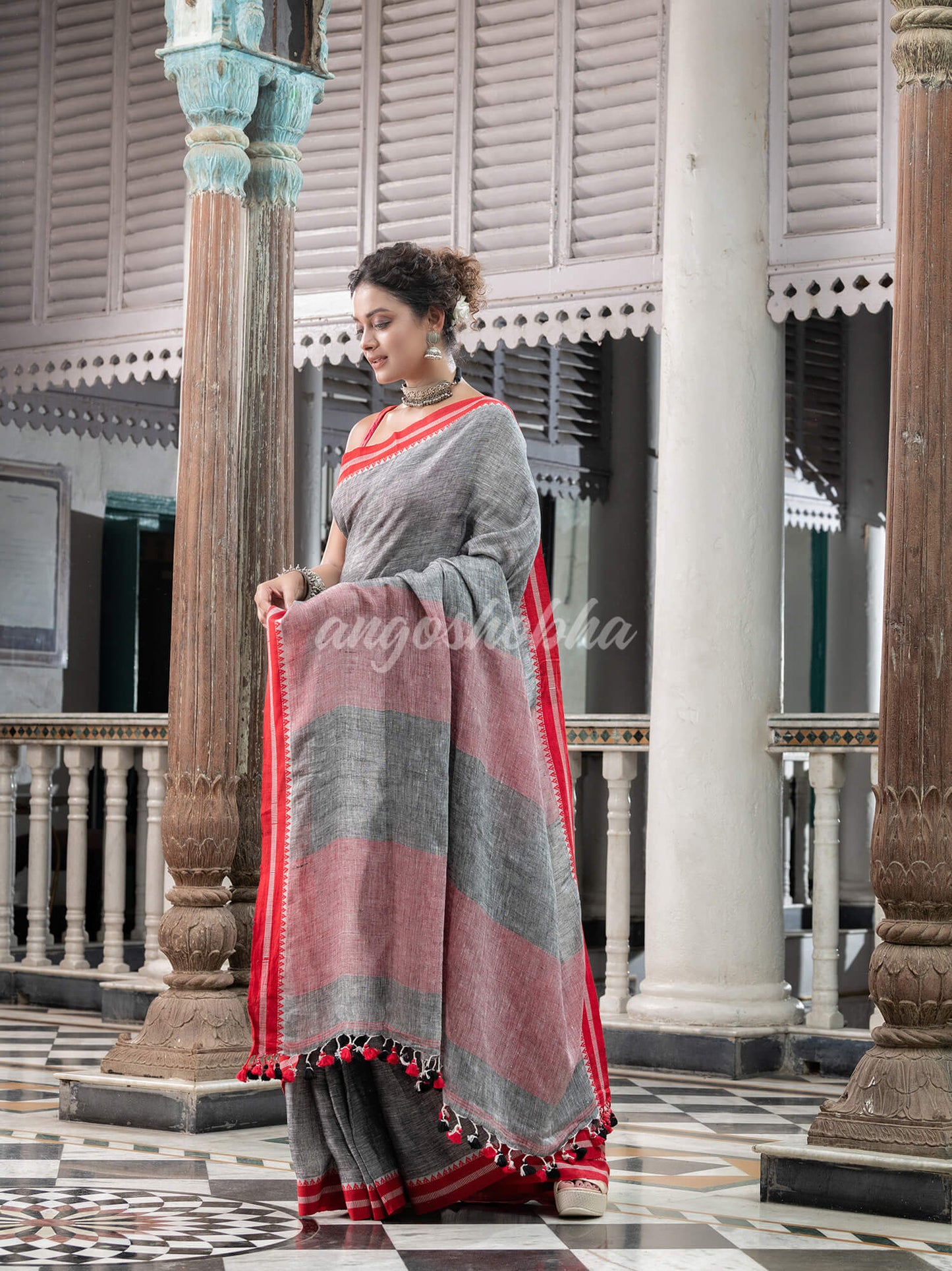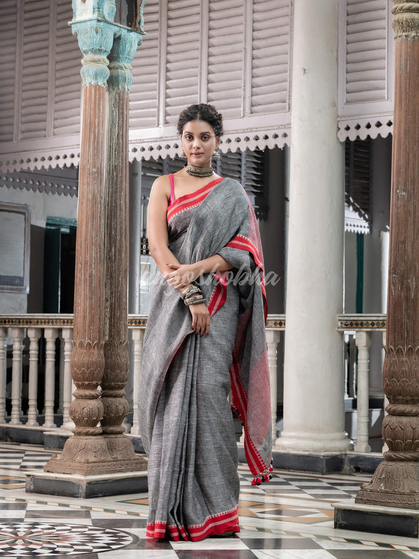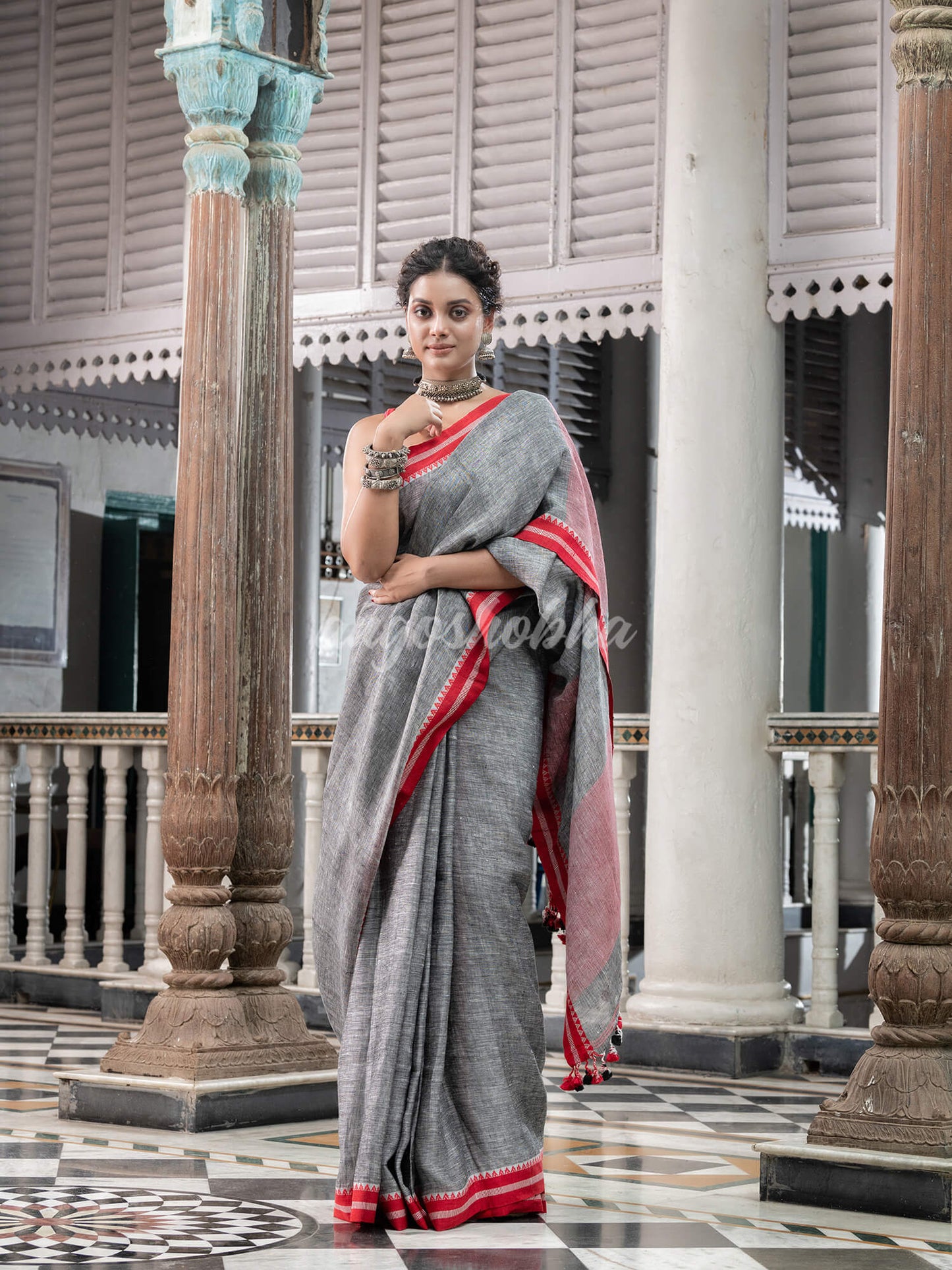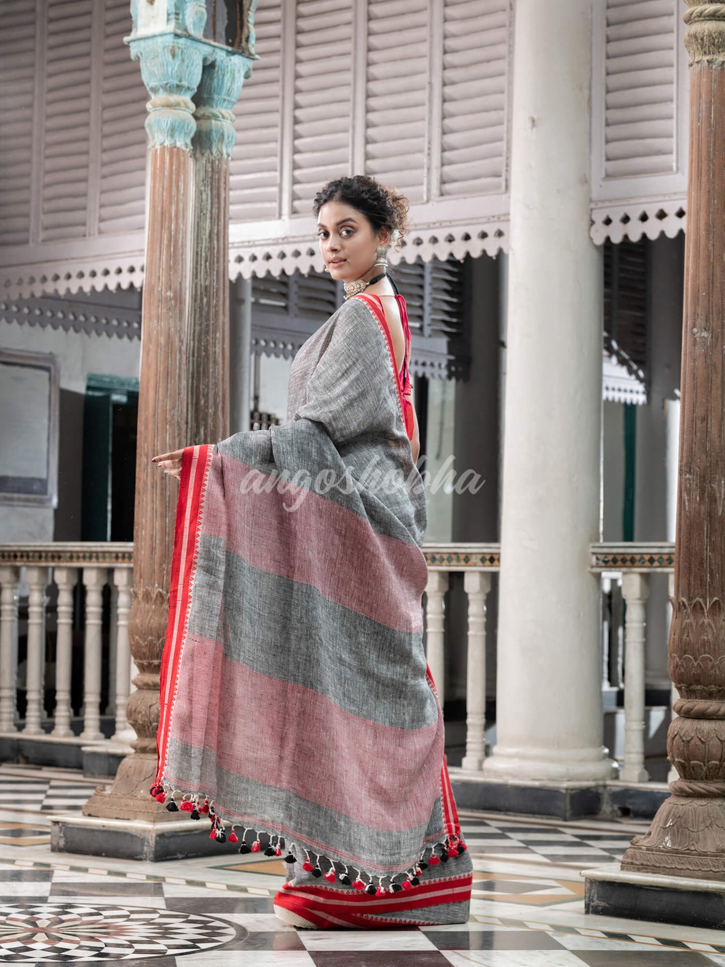Grey Linen Handloom Saree