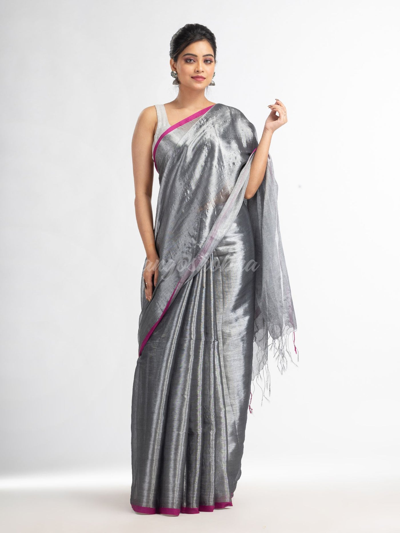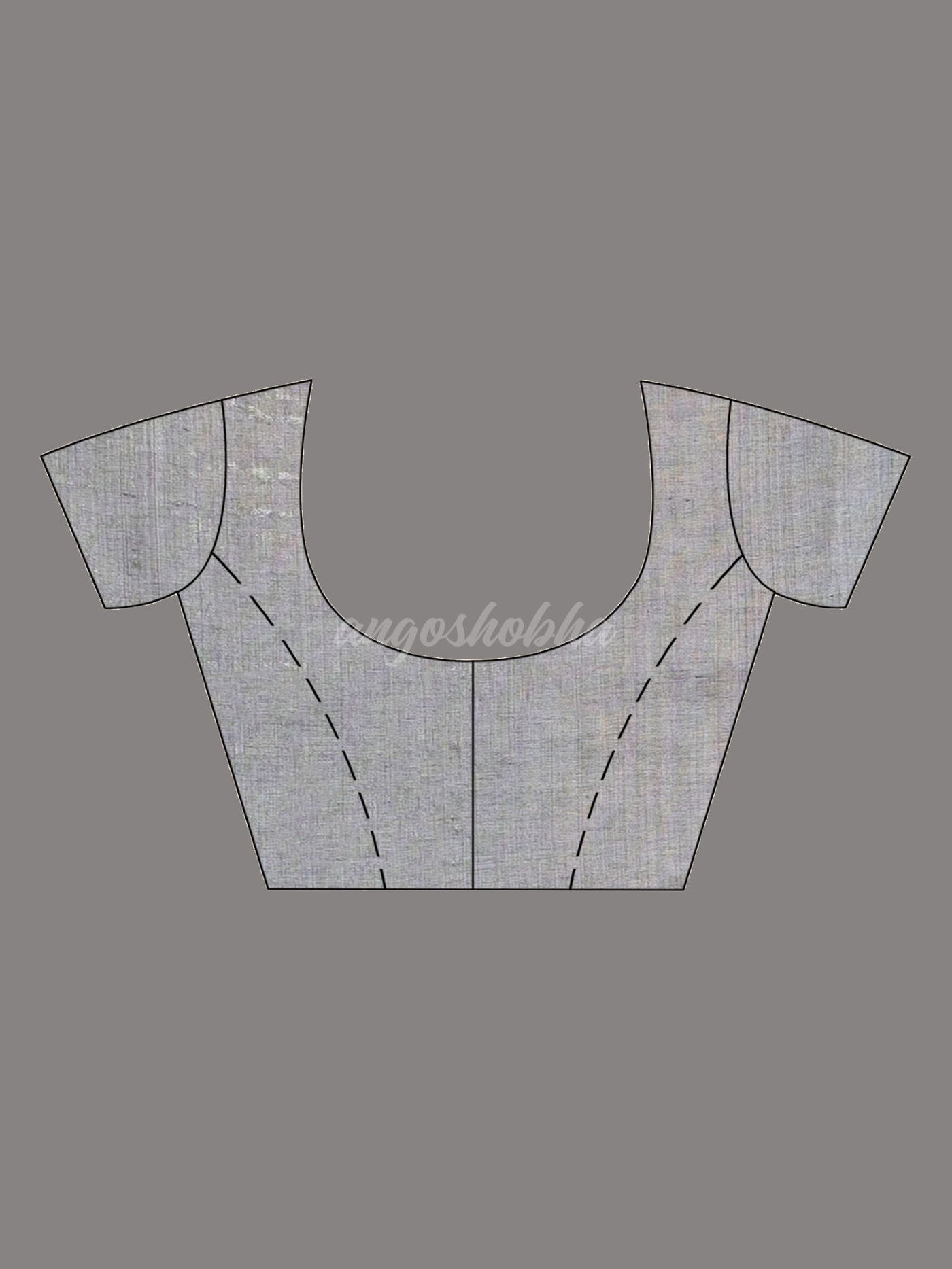 Dscription:  Sarees have their own grace, specially this one. This saree from Angoshobha is a beautiful Grey colour tissue cotton saree.The Maroon colour half inch solid border of saree. The saree comes with a grey colour running blouse piece.  this beauty gives the most comfortable fit. The body of the saree is disguised plain design. Style of it with minimal jewellery and high heels to slay the ethnic look. You can wear anywhere and any festival moment with wonderful enjoyment. So collect this product and enjoy with wearing zari cotton saree. Obviously you can trust on this collection. We are always with your fashion and choice.