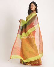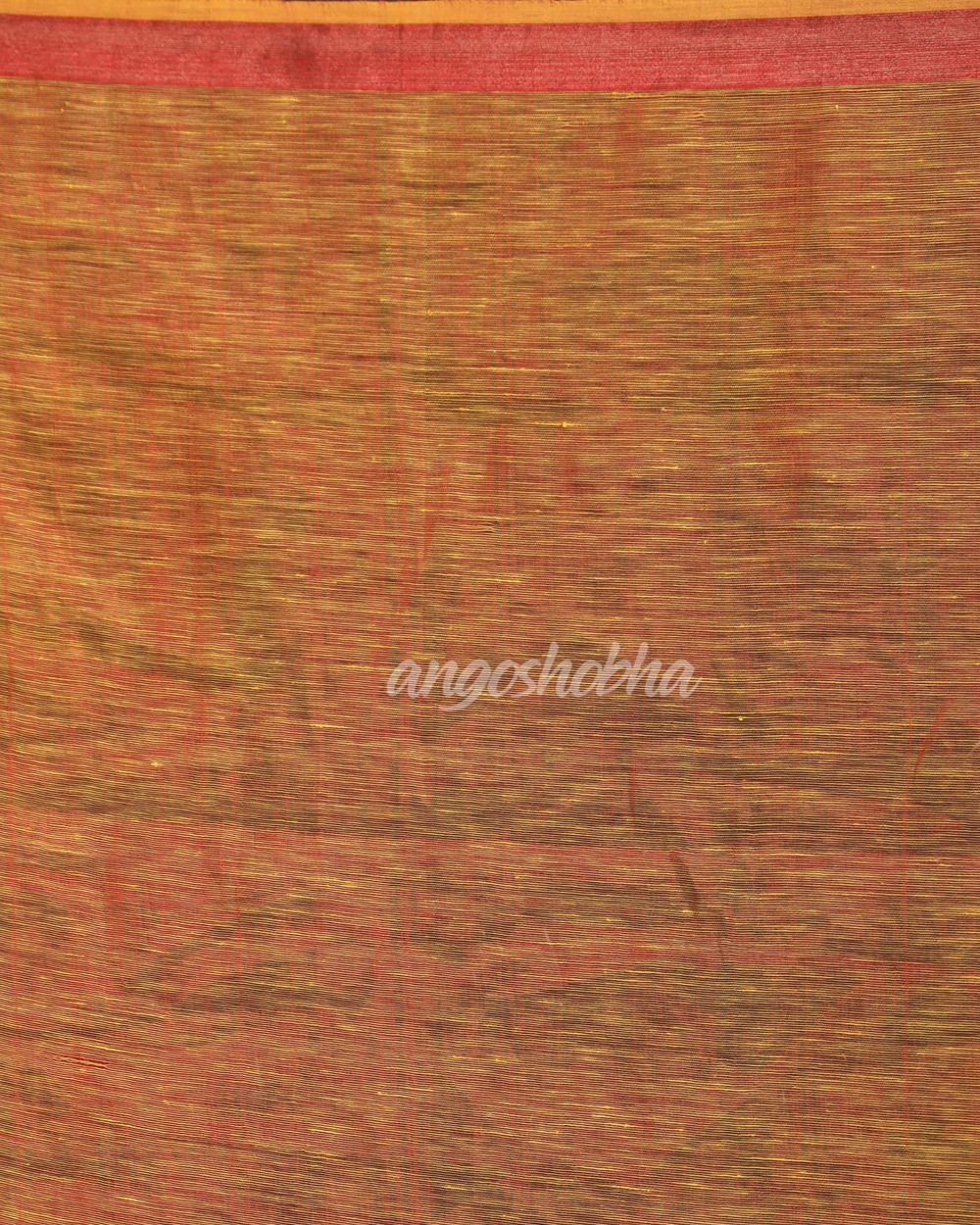 Description: Accentuate your ethnic ensemble by wearing this saree from Angoshobha. Sarees have their own grace, specially this one. This saree from Angoshobha is a beautiful lemon black handloom saree with handwoven check linen work all over.The border of the sari is disguised with red and yellow color .The hem of the sari is disguised with multi color and an attached blouse piece. Crafted in a linen fabric, this beauty gives the most comfortable fit. Style of it with minimal jewellery and high heels to slay the ethnic look.You can wear anywhere and any festival moment with wonderful enjoyment.So collect this product and enjoy with wearing linen saree. Obviously you can trust on this collection. We are always with your fashion and choice.