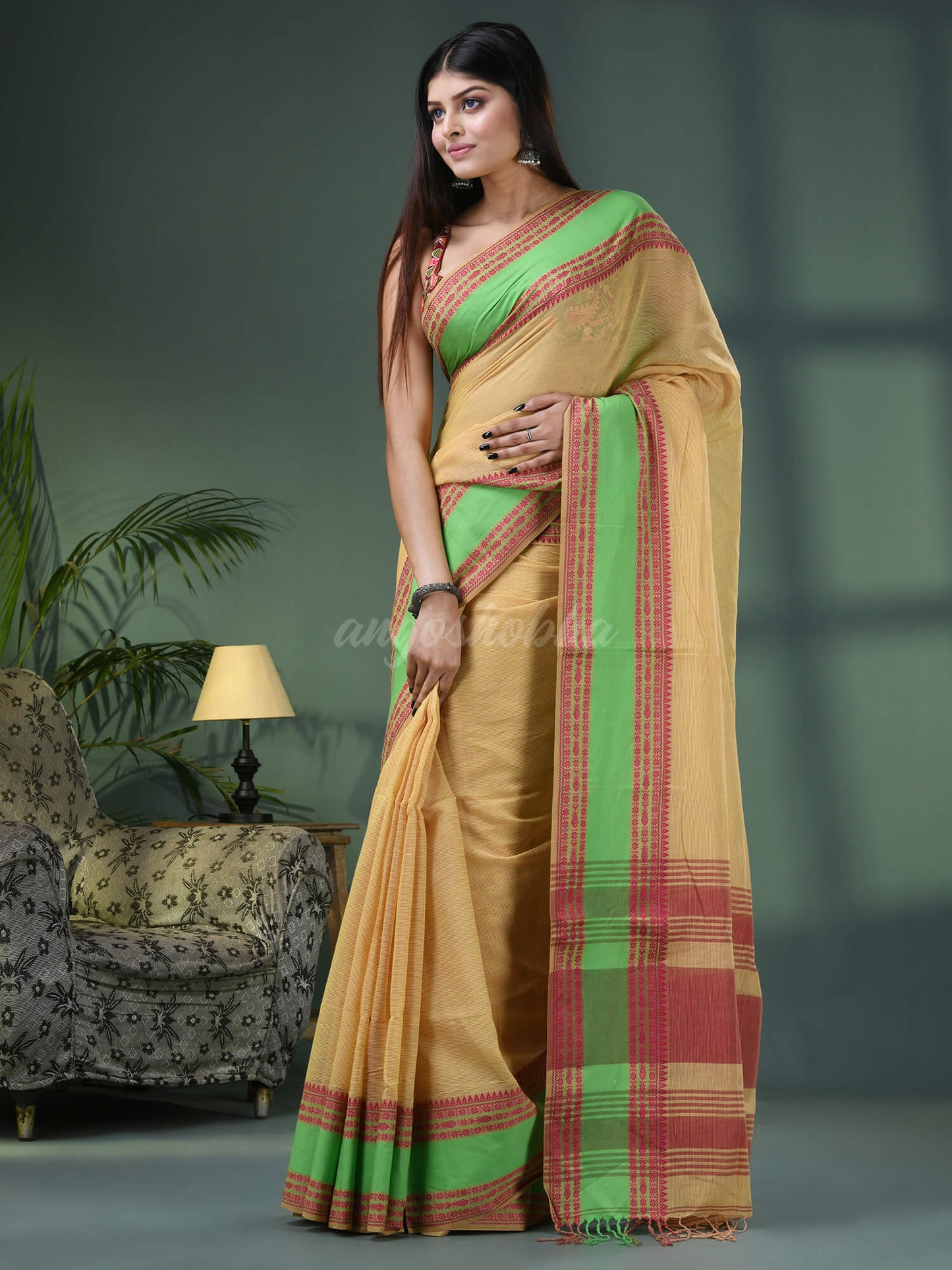 Description : Accentuate your ethnic ensemble by wearing this saree from Angoshobha. Sarees have their own grace, specially this one. This saree from Angoshobha is a beautiful Lemon handloom cotton saree. the saree all body Solid. with  jacquard design border.The pallu of the sareeis decorated with strip .The saree comes with a Lemon colour running blouse piece. saree with jacquard weaving  Crafted in a cotton fabric, this beauty gives the most comfortable fit. Style it with minimal jewellery and high heels to slay the ethnic look.Colour hues may slightly vary from that which appears in the image