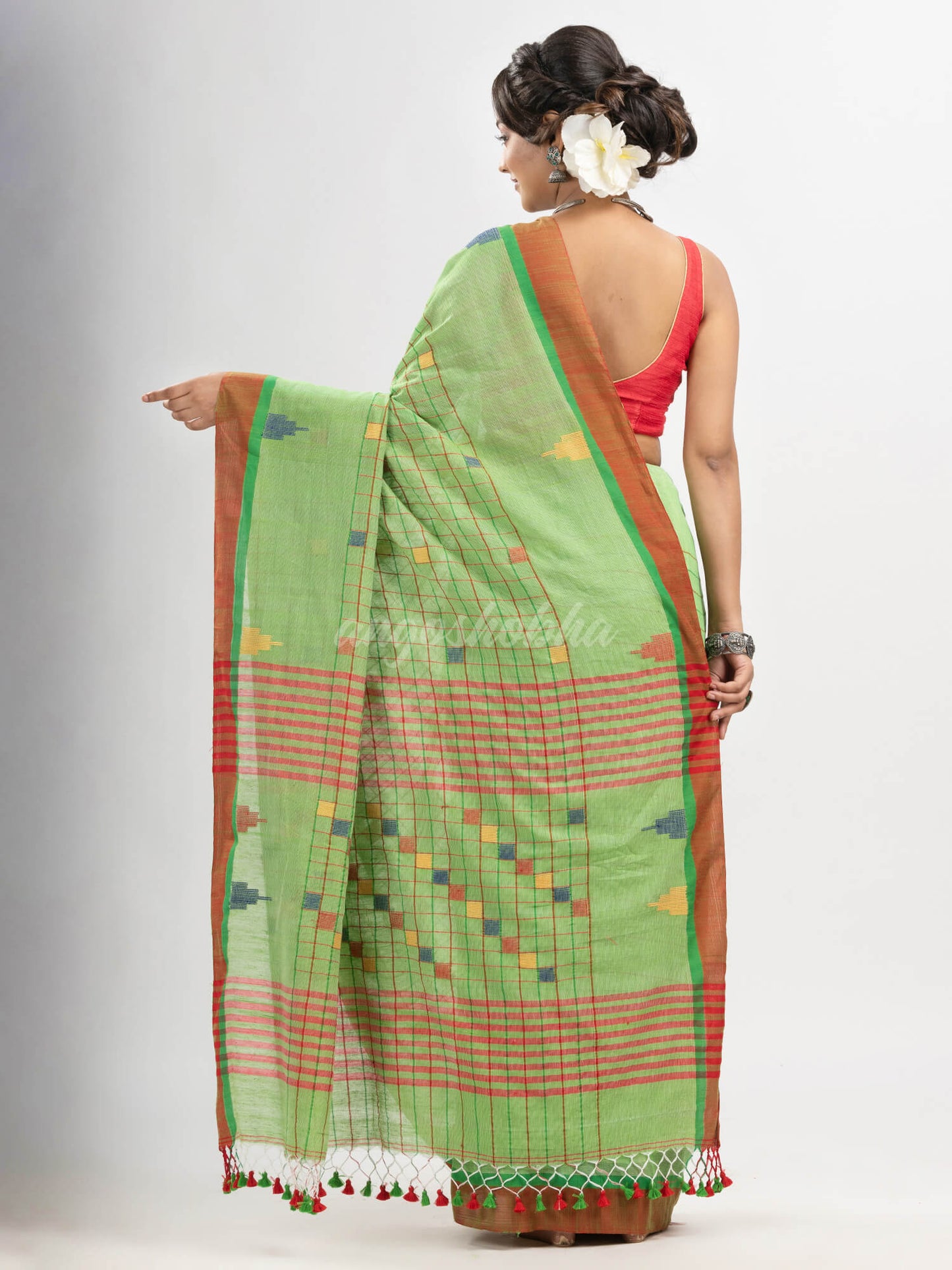 Description: Accentuate your ethnic ensemble by wearing this saree from Angoshobha. Sarees have their own grace, specially this one.This saree from Angoshobha is a beautiful Lime Green cotton jacquard saree. Saree all body Check and buti.The saree is multi colour temple solid border. with pallu multi colour Check & buti. The saree comes with a Lime Green colour running blouse piece. You can wear any whern and Crafted in a cotton fabric, this beauty gives the most comfortable and any festival moment with wonderful enjoyment.So collect this product and enjoy with wearing cotton saree. Obviously you can trust on this collection. We are always with your fashion and choice.