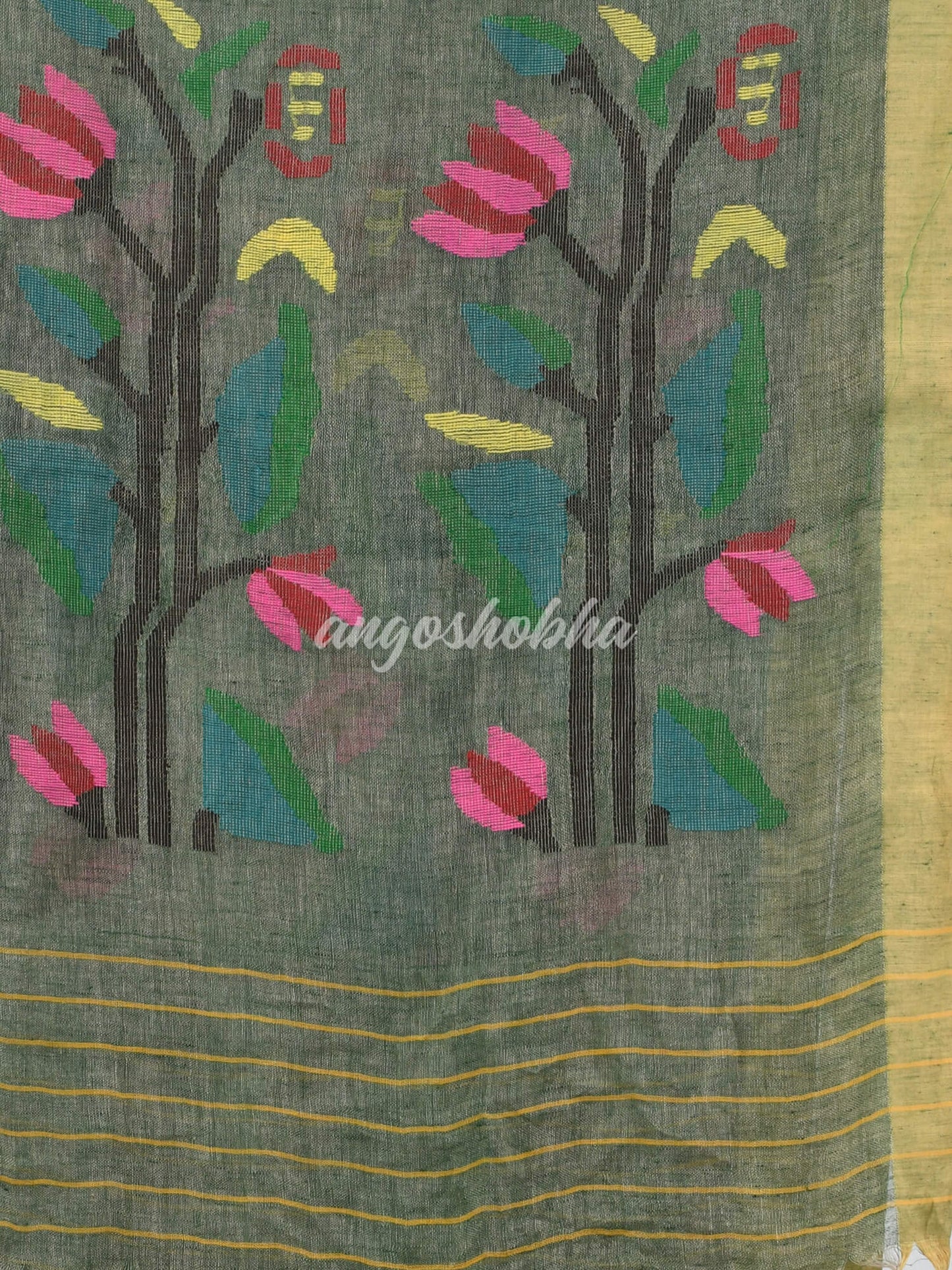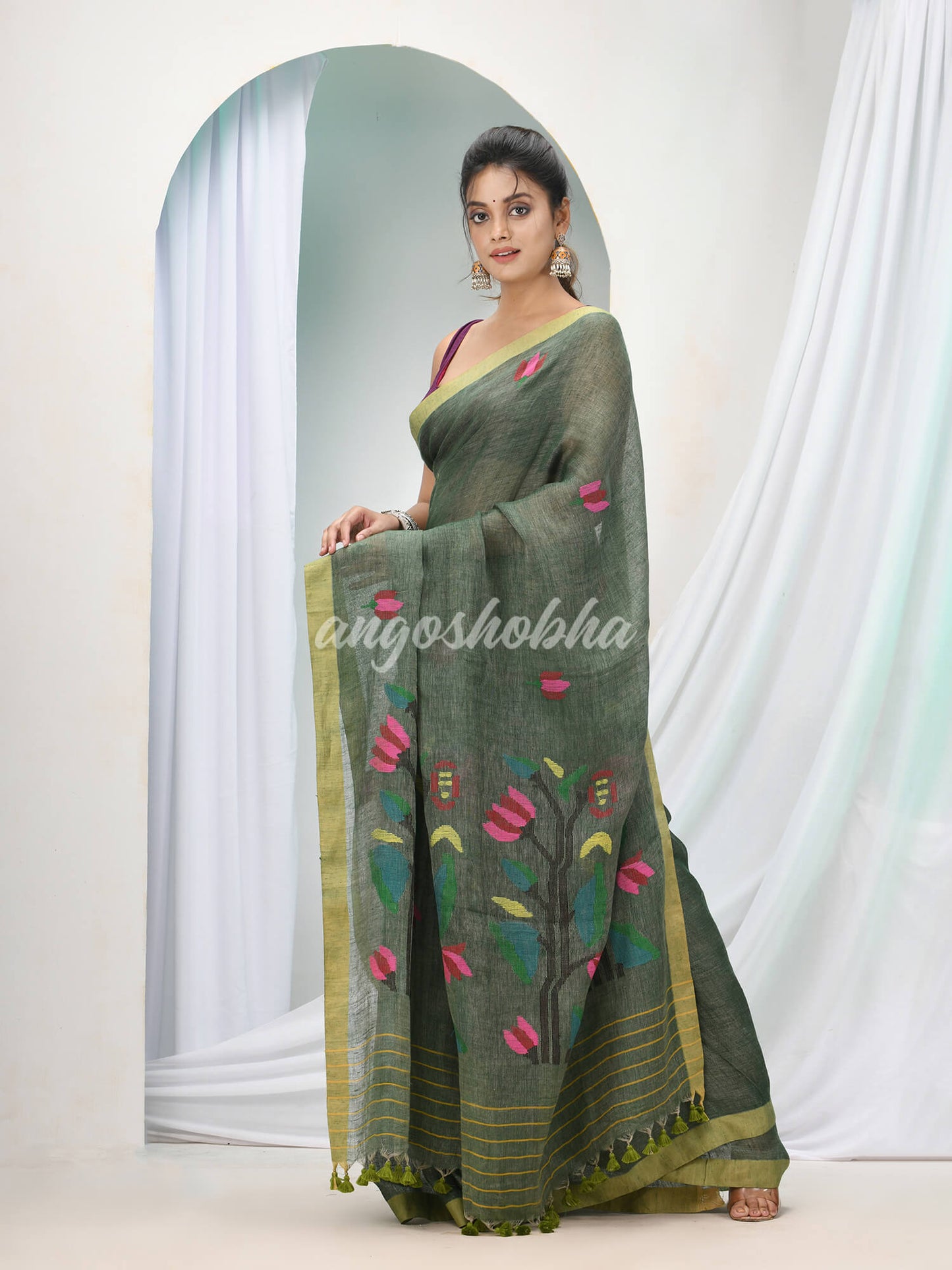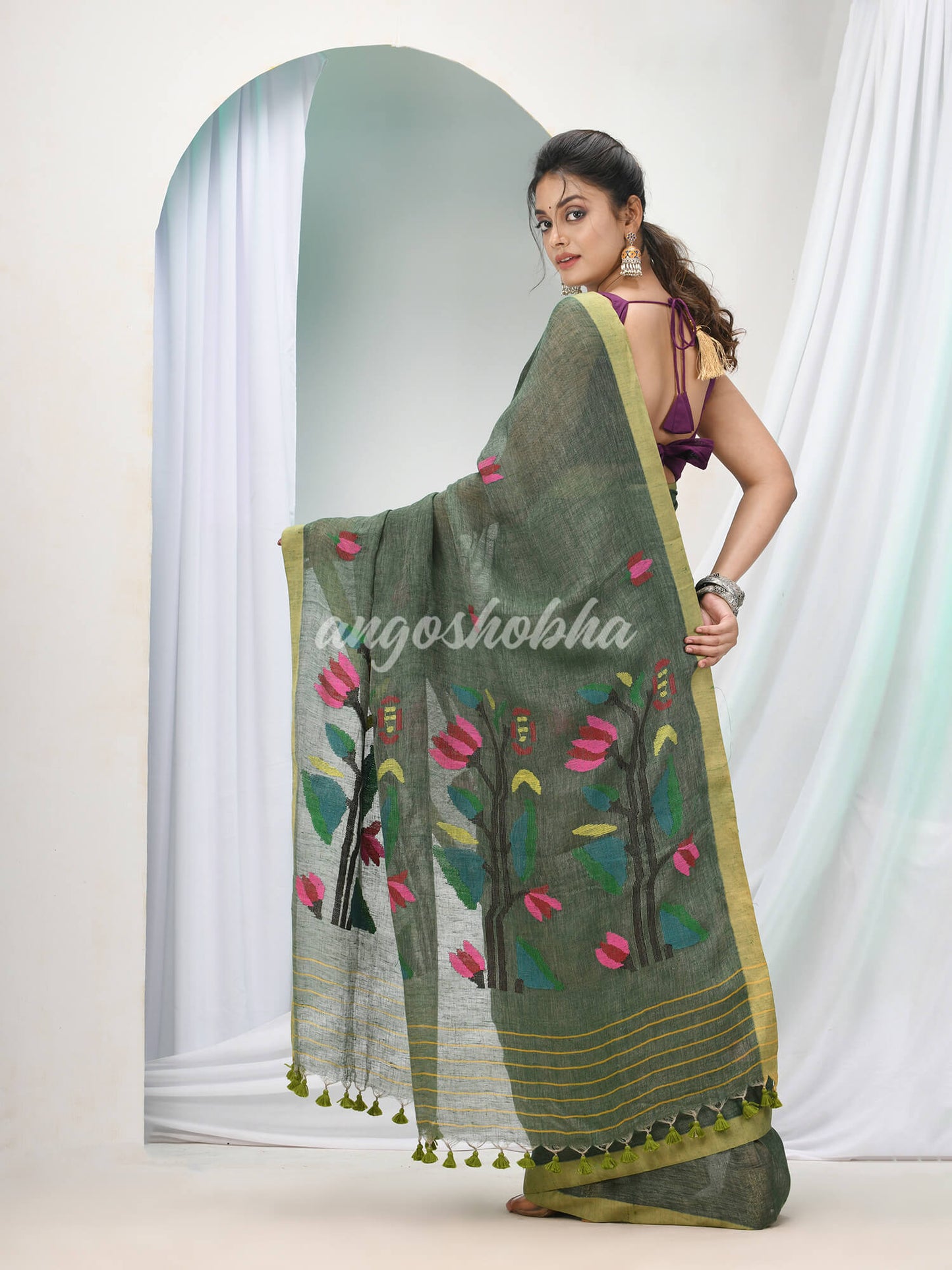 Expertly crafted from high-quality linen, this Moss Green Handloom Saree boasts a unique texture and stunning moss green color. With an elegant drape and breathable material, this saree is perfect for any occasion. Elevate your style and comfort with this handloom saree.