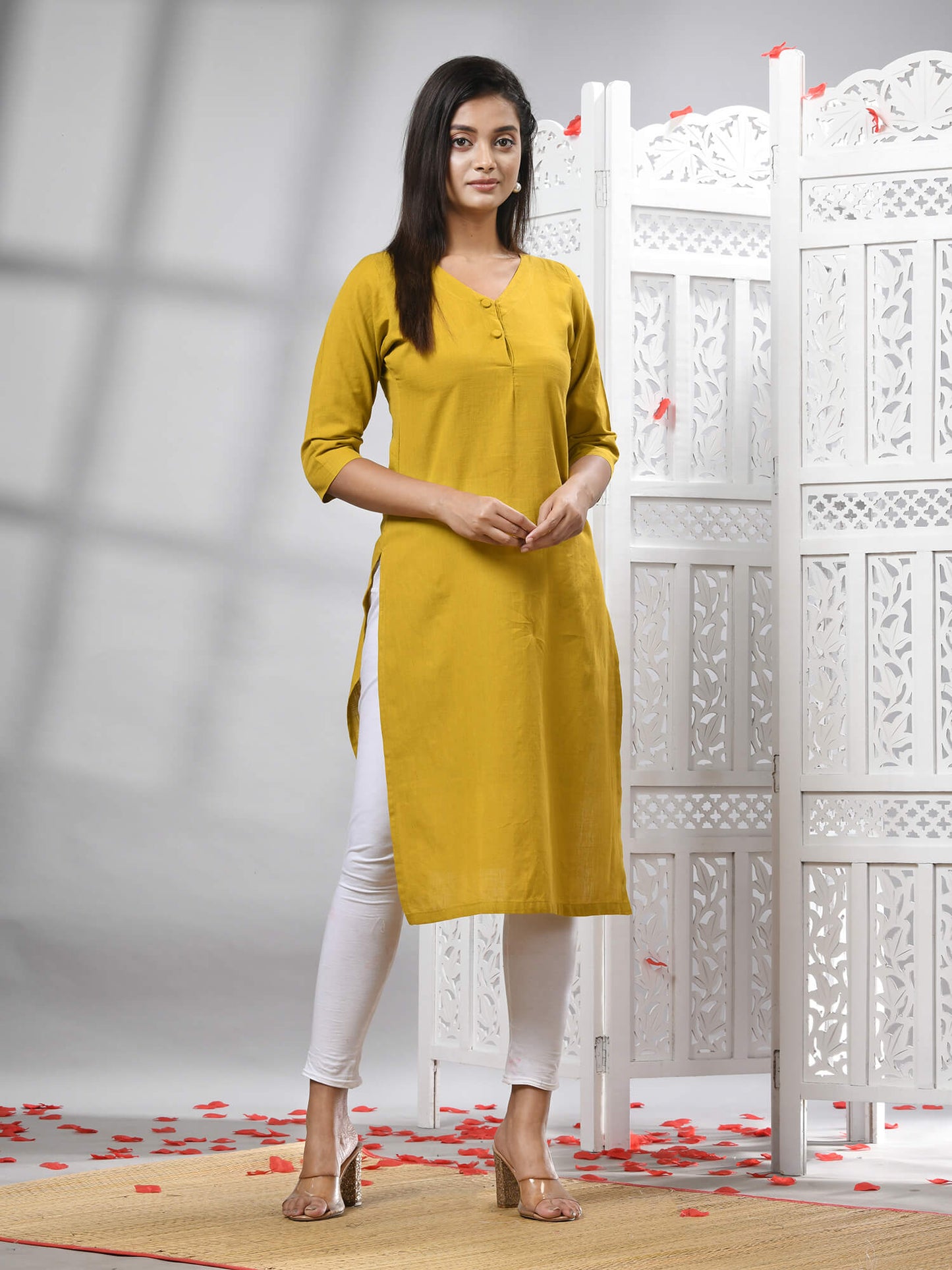 Mustard Cotton Bengal Handwoven Kurti
