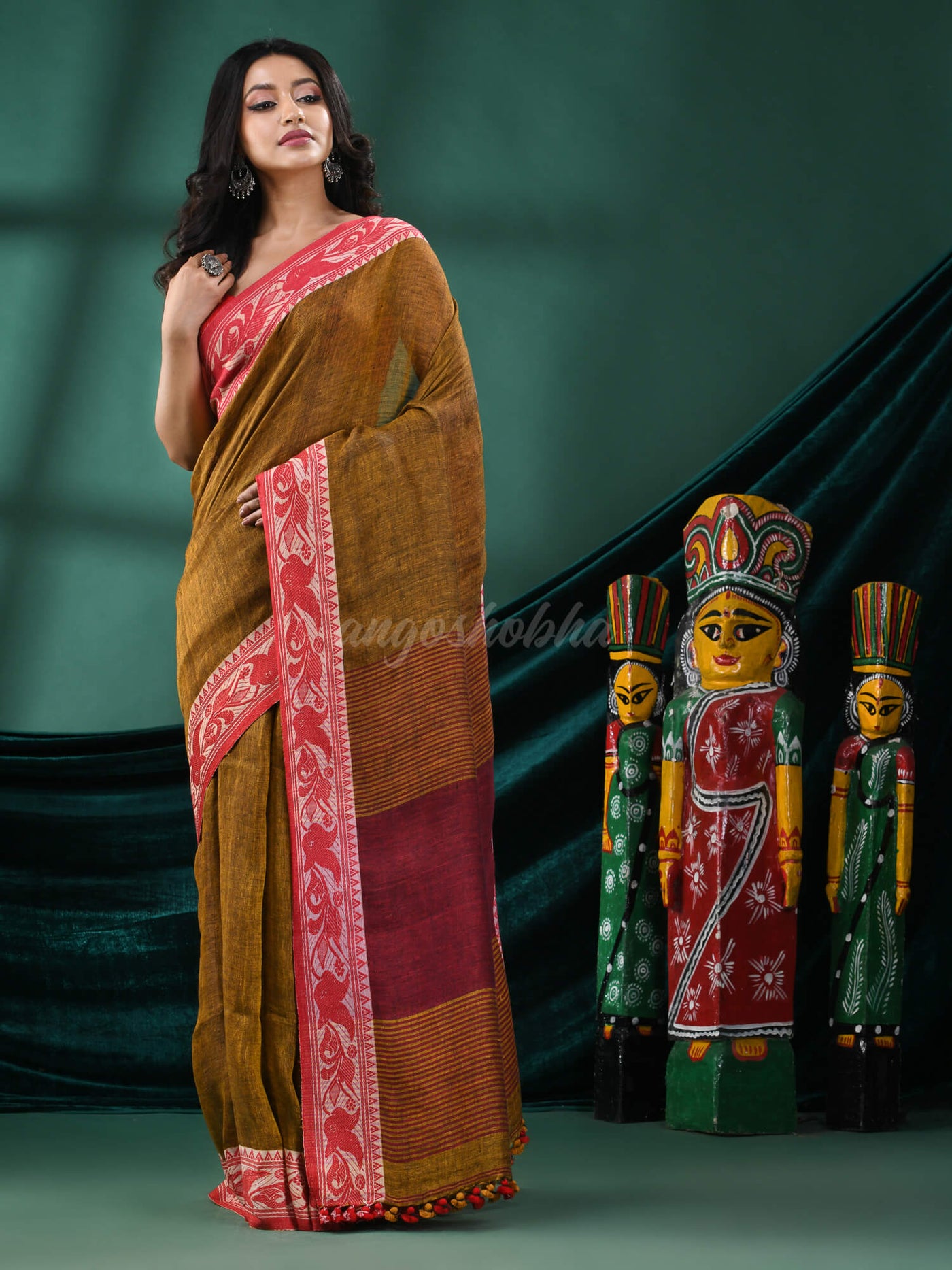 Mustard Linen Handloom Saree