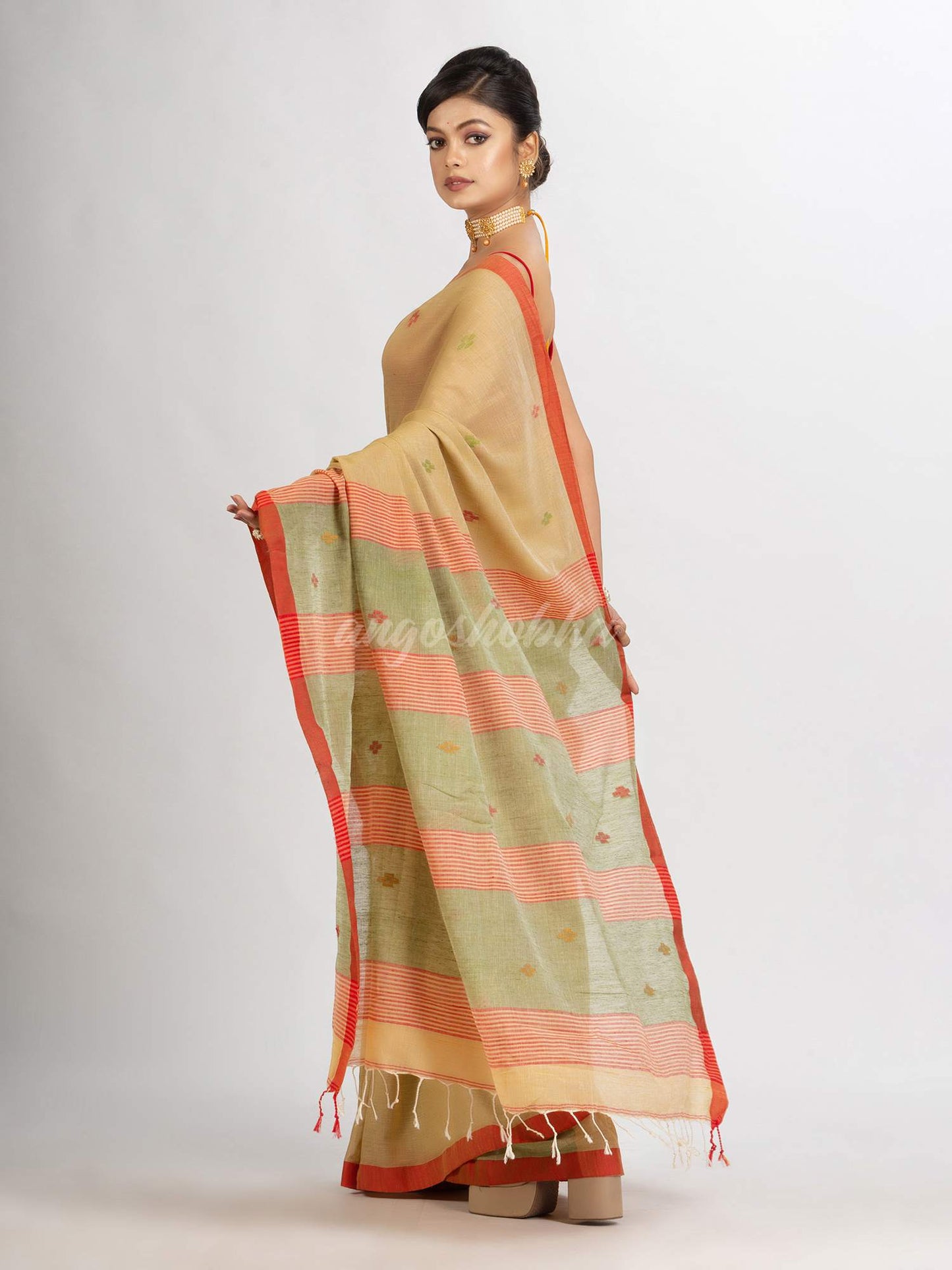 Natural Tussar Colour Handwoven Cotton Jamdani handloom Saree
