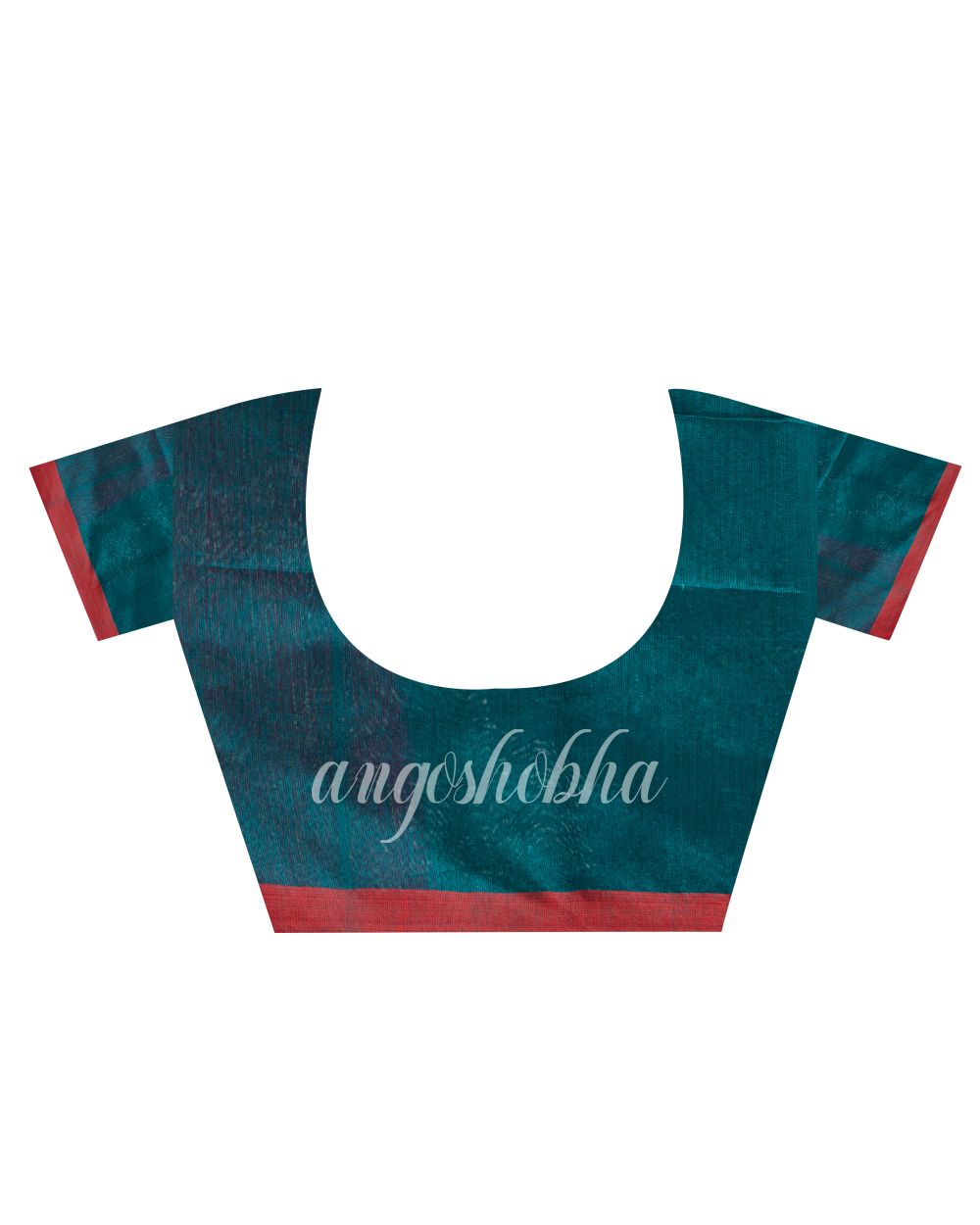 Description: Accentuate your ethnic ensemble by wearing this saree from Angoshobha. Sarees have their own grace, specially this one.This saree from Angoshobha is a beautiful rani pink handloom saree with handwoven work all over.It has red border and the body is hatched with plain rani pink and air superiority blue compilation.It comes with a vibrant rani pink and  air superiority blue and an attached blouse piece. Crafted in a  cotton blend fabric, this beauty gives the most comfortable fit. Style of it with minimal jewellery and high heels to slay the ethnic look.You can wear anywhere and any festival moment with wonderful enjoyment.So collect this product and enjoy with wearing cotton blend saree. Obviously you can trust on this collection. We are always with your fashion and choice.