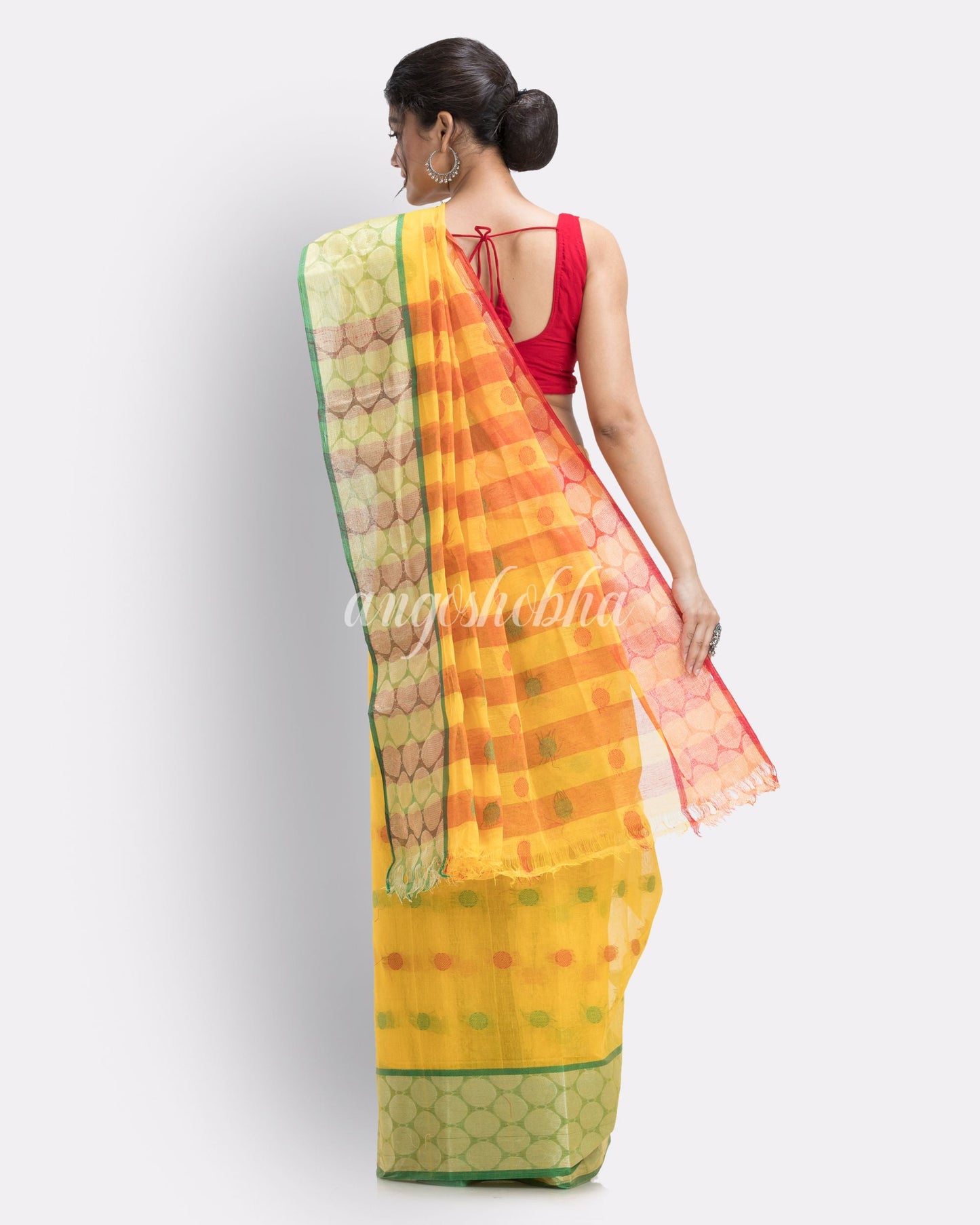 Self Ball Design Tant Pure Cotton Saree(Yellow)