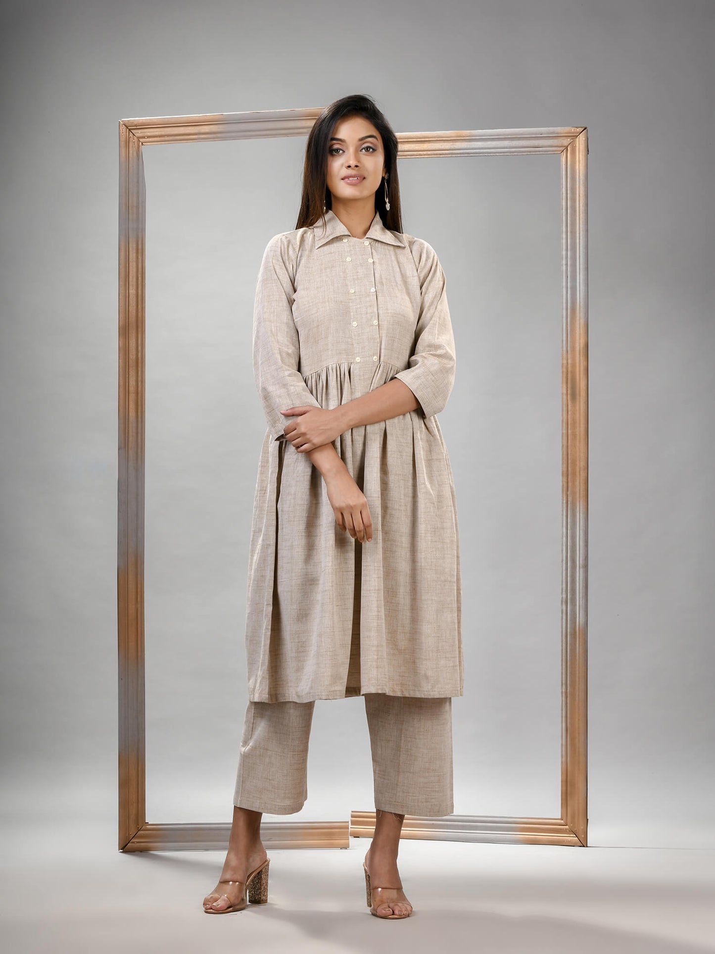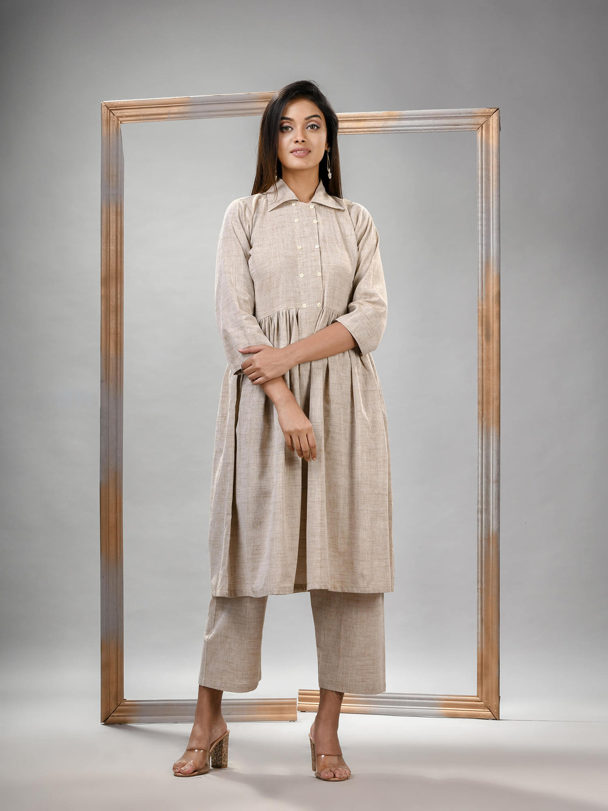 Silk Grey Cotton Bengal Handwoven Kurta Set