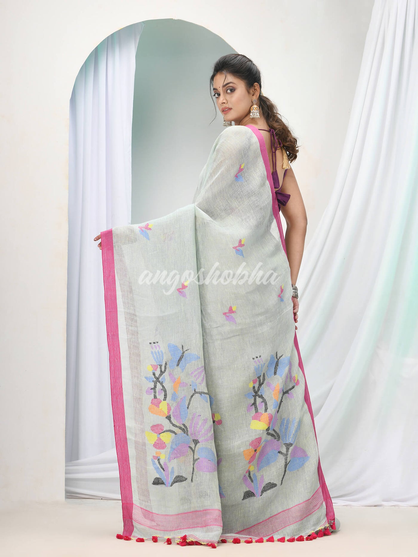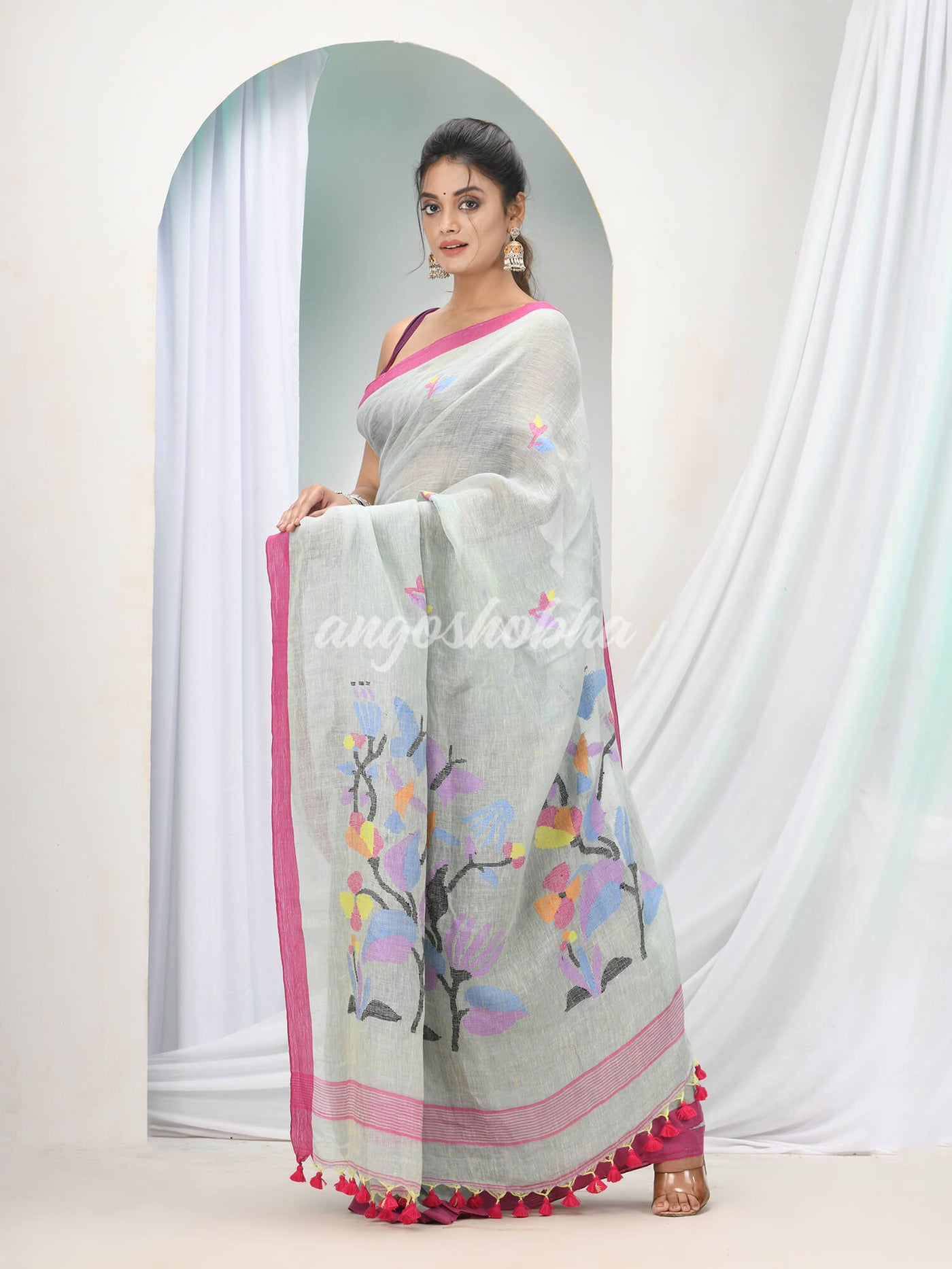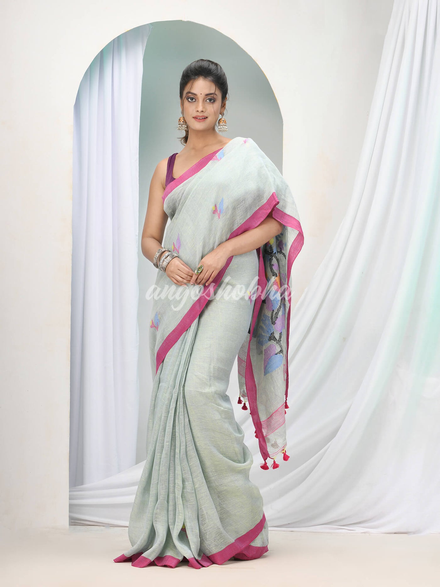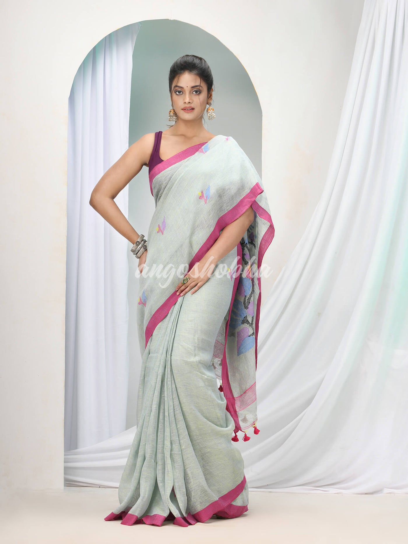Description: This Sky-Blue Linen Handloom Saree is perfect for any occasion. Made with high-quality fabric, it offers a luxurious drape and comfortable wear. The handloom craftsmanship ensures intricate designs that exude elegance. Elevate your wardrobe with this beautiful saree.