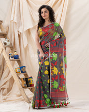 Traditional Deep Gray Soft Dhakai Jamdani Saree