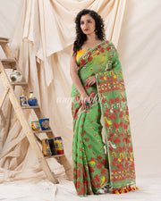 Traditional Green Soft Dhakai Jamdani Saree