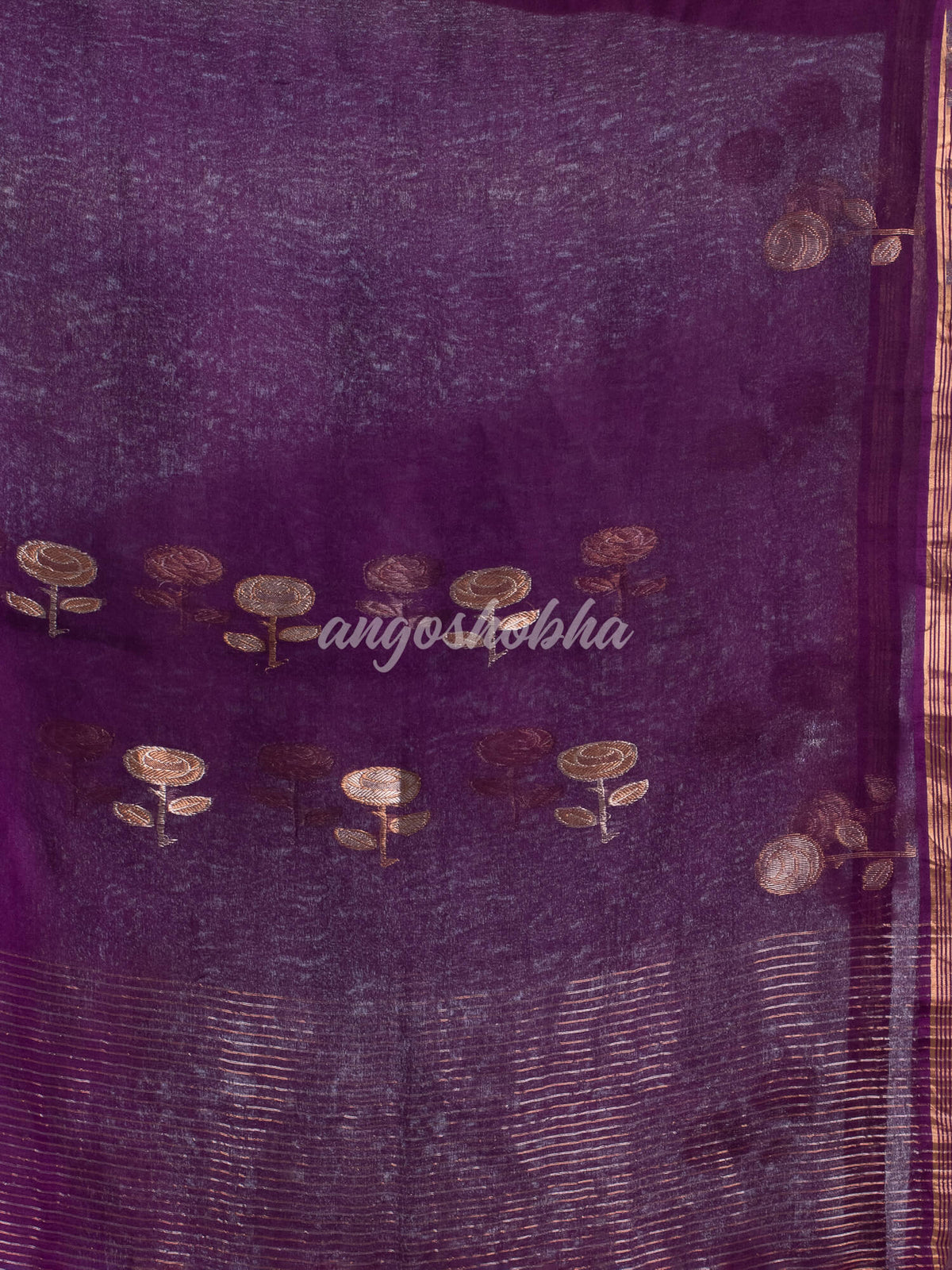 Traditional Purple Muslin Silk Zari Work Handloom Saree
