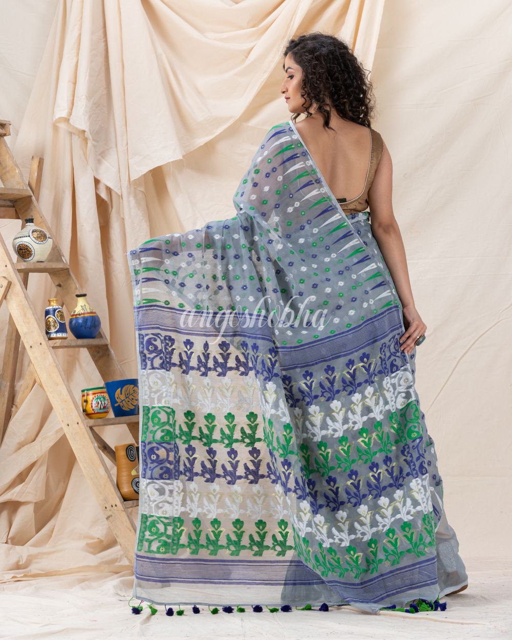 Traditional Silver Grey Soft Dhakai Jamdani Saree
