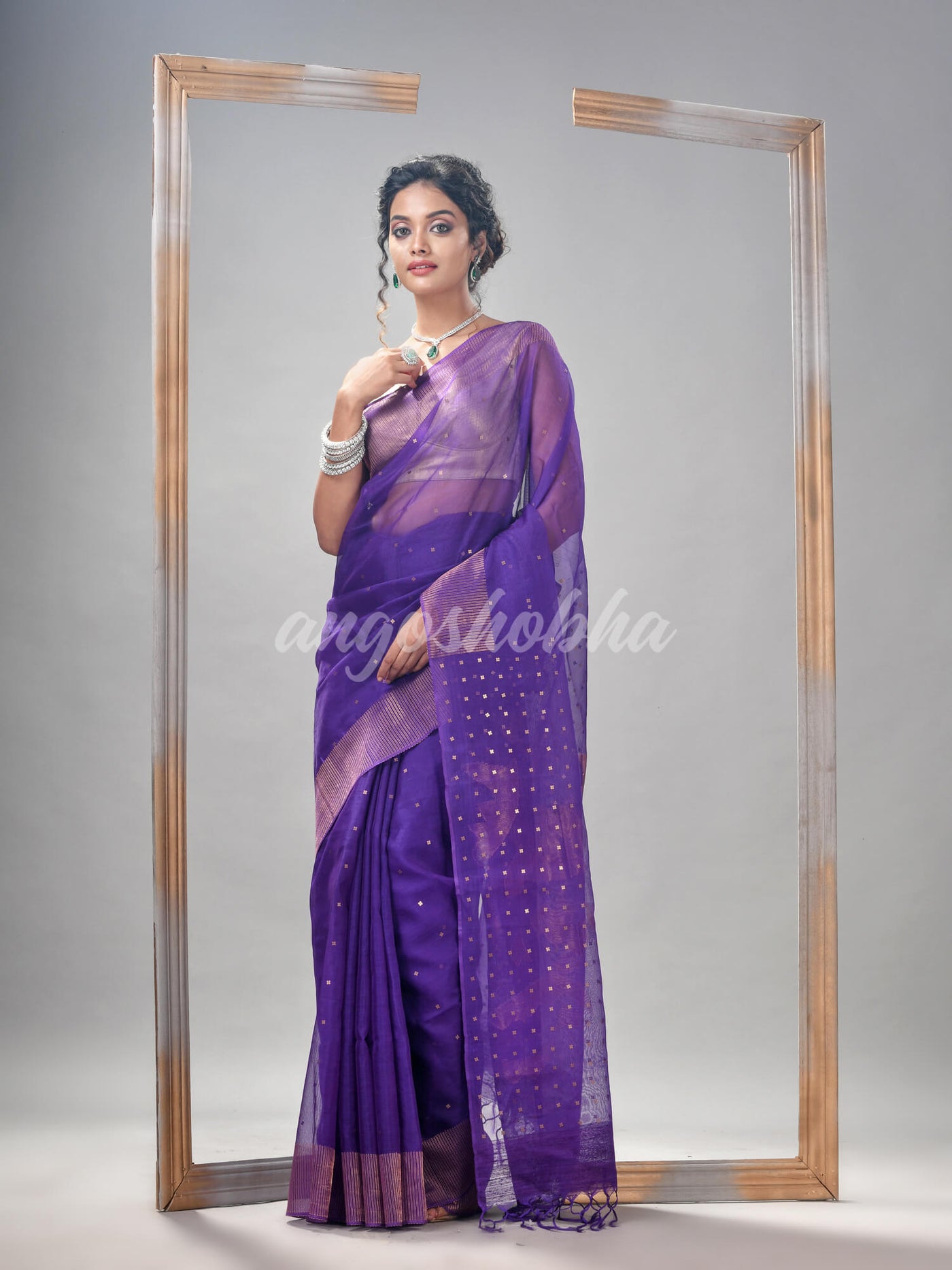 Traditional Violet Silk Matka Sequin Jamdani Saree