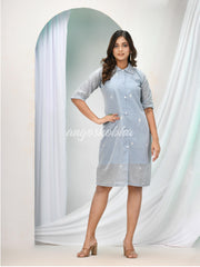 Uranian Blue Cotton Bengal Handwoven One Piece