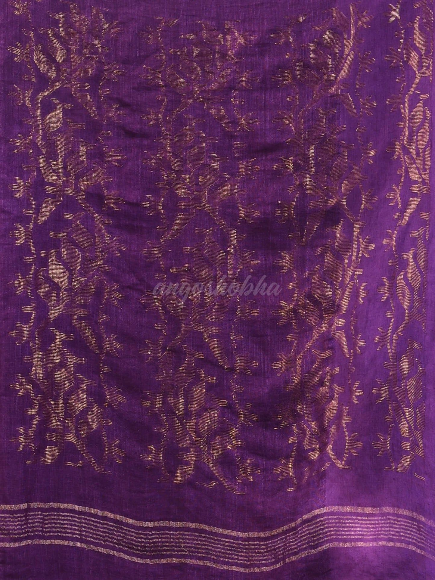 Violet Linen Broder With Pallu Jacquard Zari Work Handwoven Saree