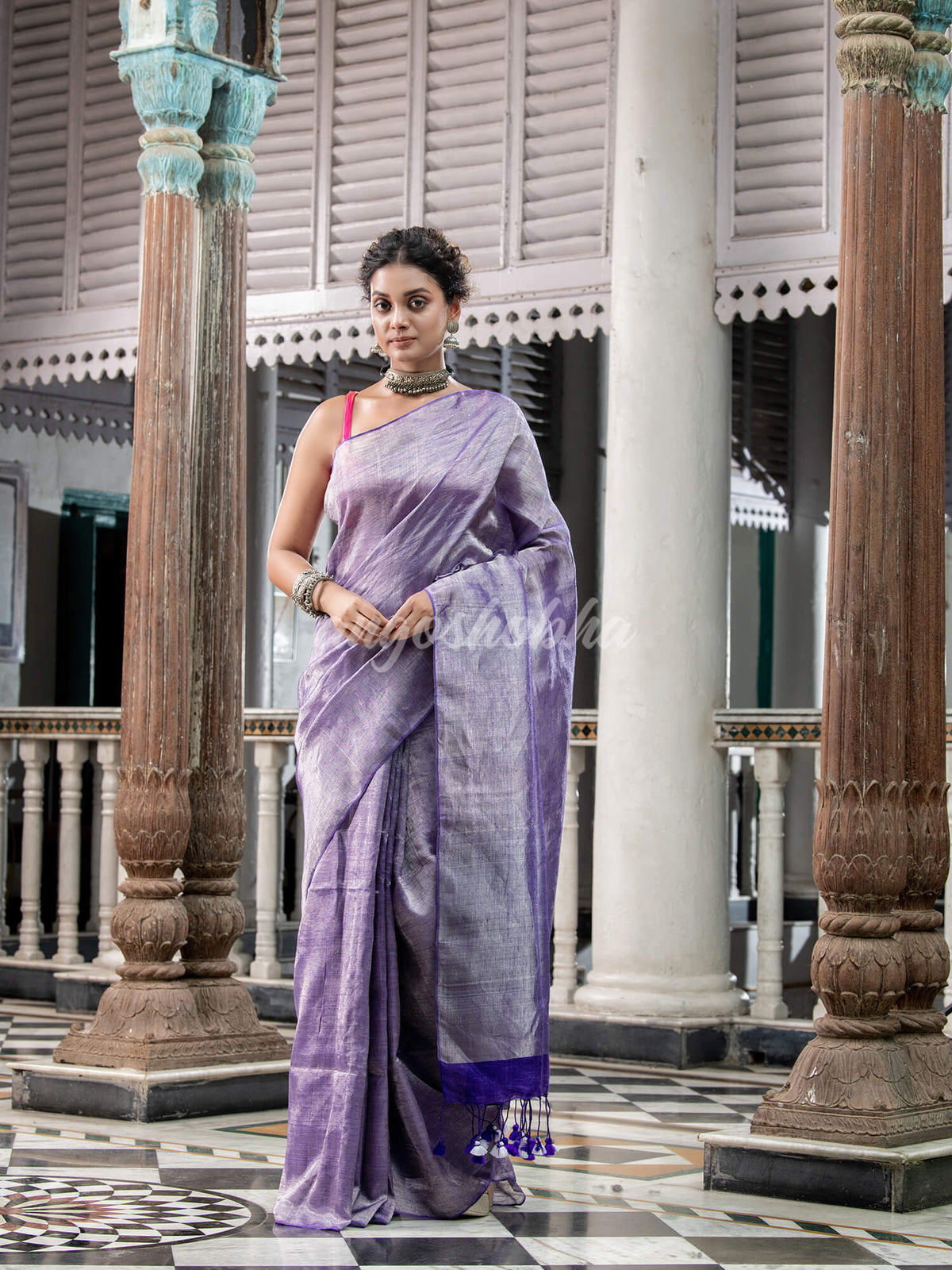 Angoshobha ethnic pure handloom linen saree comes with an attached blouse piece according to your taste and preference. This Violet handloom linen saree is crafted by Linen Zari craftsmen using high quality linen Zari fabric without compromising on its quality. saree is very comfortable in summer and suitable for festivals this saree and blouse set will fetch you Oodles of compliments and praises. Colour hues may slightly vary from that which appears in the image. Minor irregularities is the uniqueness of handlooms and makes each piece exquisite