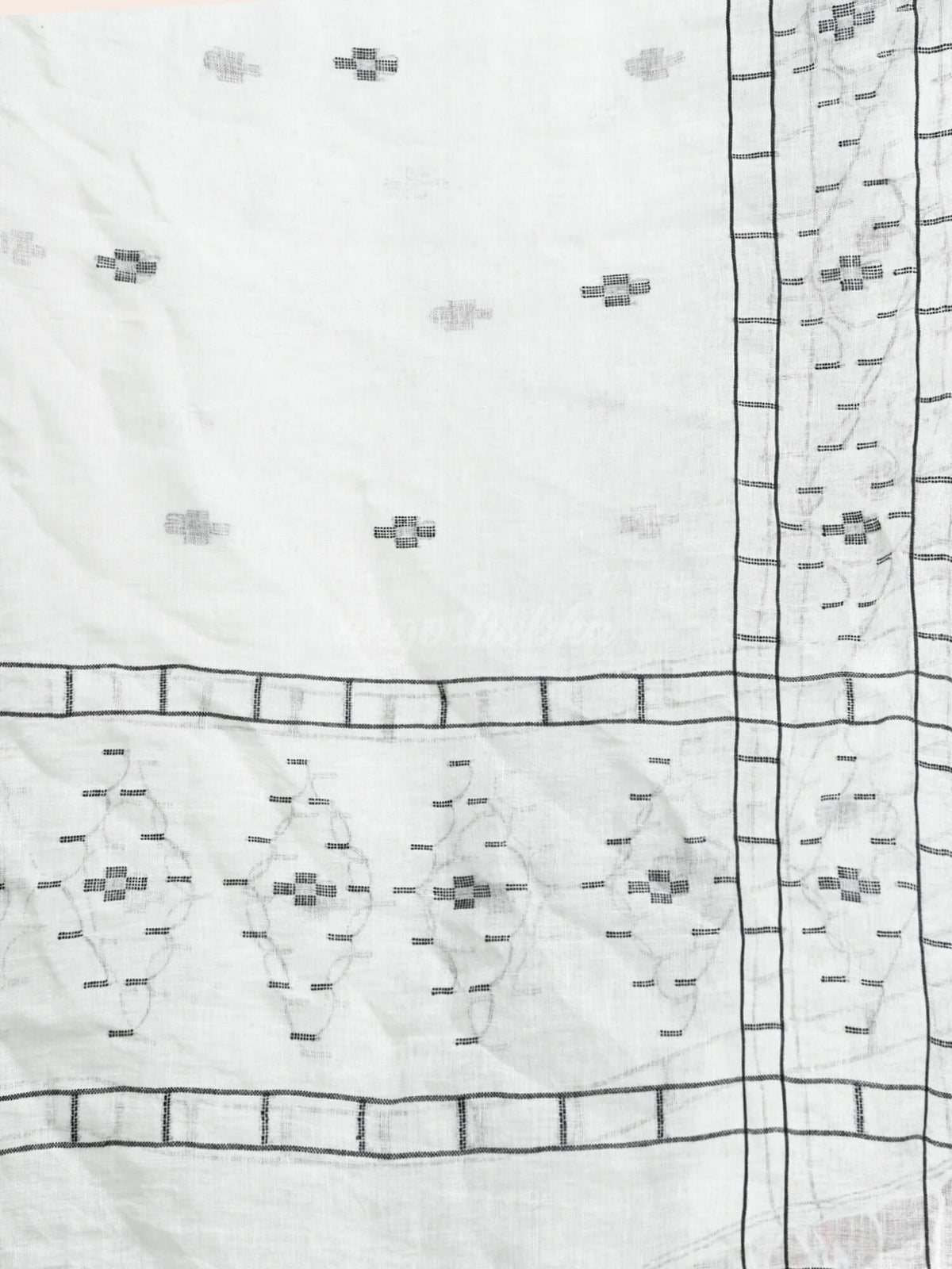 White Linen Jamdani Work Handwoven Saree