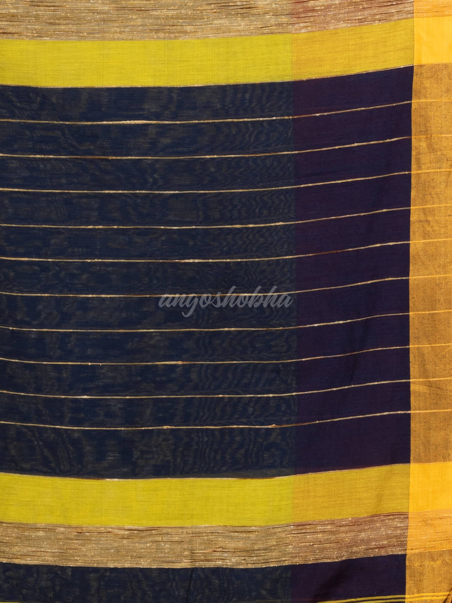 Description: Accentuate your ethnic ensemble by wearing this saree from Angoshobha. Sarees have their own grace, specially this one. This saree from Angoshobha is a beautiful Yellow green & Navy blue colour half and half handloom saree . The saree all body solid.The saree is Ganga Jamuna solid border.The saree pallu is golden zari colour strip on Navy blue . and an attached Navy Blue colour blouse piece. Crafted in a soft cotton bend fabric, this beauty gives the most comfortable fit. Style it with minimal jewellery and high heels to slay the ethnic look.You can wear anywhere and any festival moment with wonderful enjoyment.So collect this product and enjoy with wearing cotton saree. Obviously you can trust on this collection. We are always with your fashion and choice.