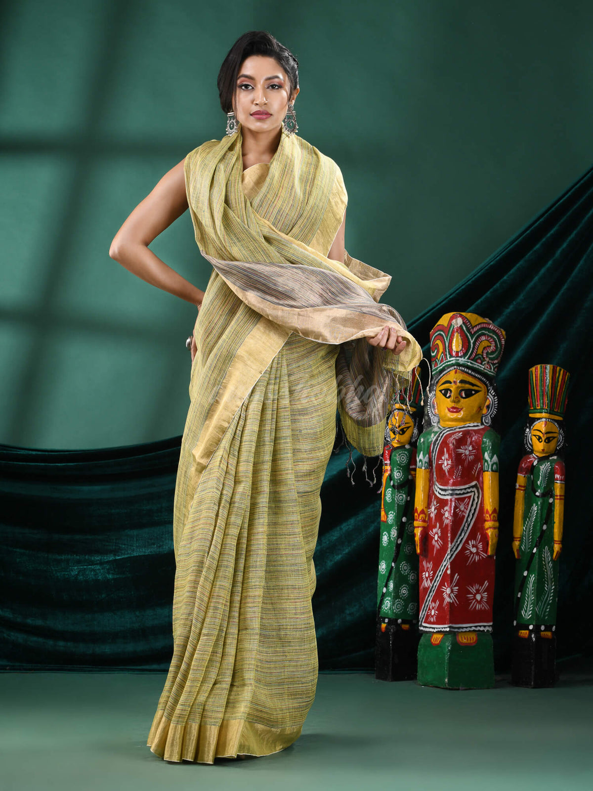 Yellow Linen Handloom Saree